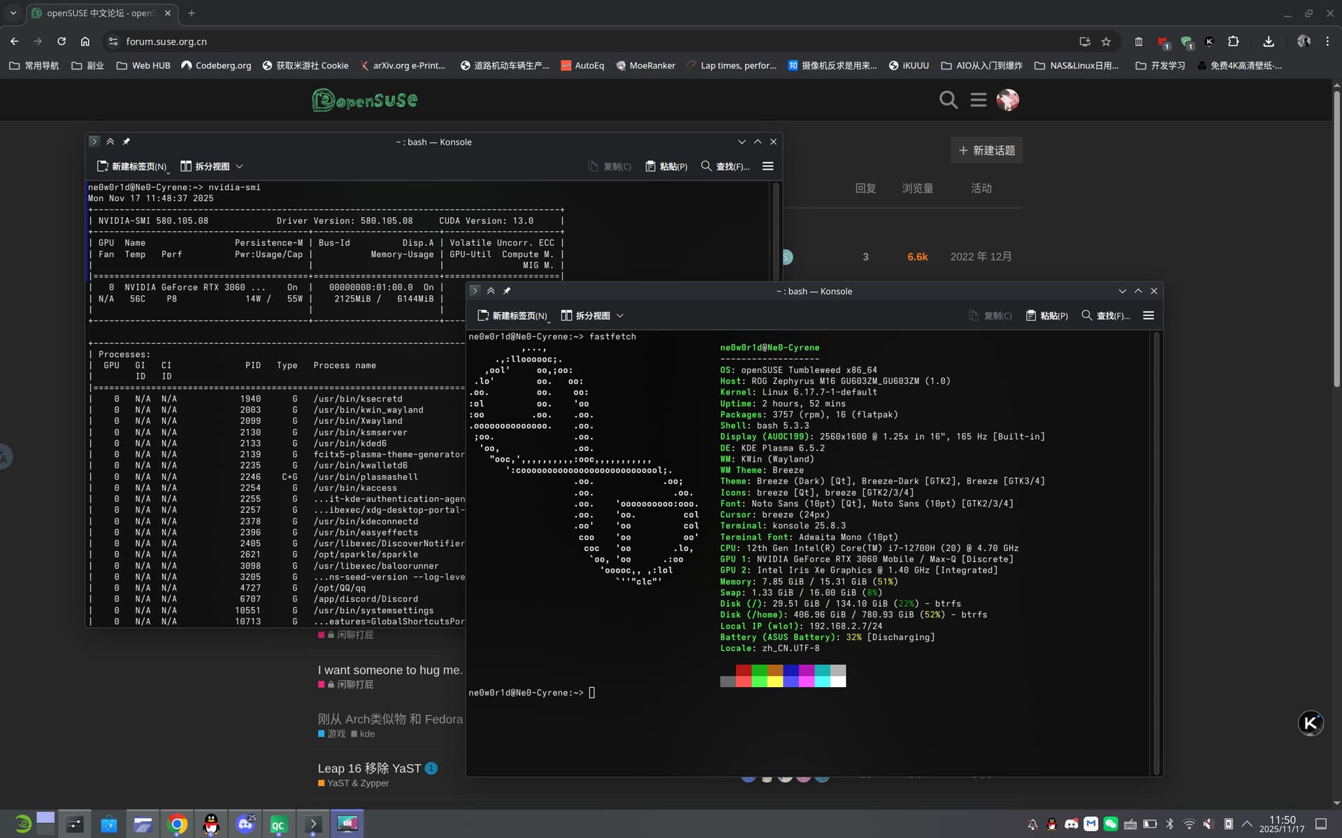 另外,我按照wiki完成了理论上正确的版本的闭源驱动安装(G06-580.xx),我已经查过NVIDIA驱动官网,理论上我的显卡对应的就是这个版本,然而安装完成后没有任何变化,我的桌面仍是核显驱动的,也没有遇到黑屏问题。